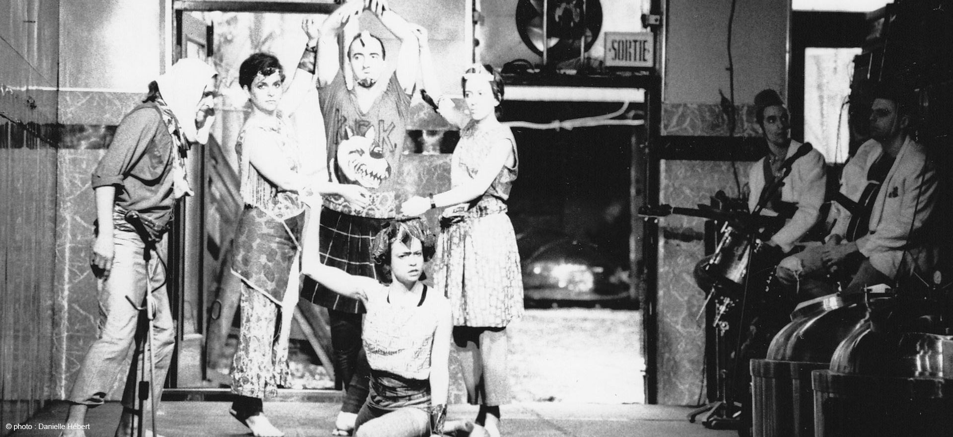 By/with: Marie David, Richard Fortier, Nathalie Gauvin, Danielle Hébert, Gaétan Nadeau, Nathalie Derome / Directed by: Nathalie Derome / Music: François Martel, Benoît Bourdeau, Marc Leduc / Stage design: Benoît Bourdeau / Costumes: Danielle Hébert