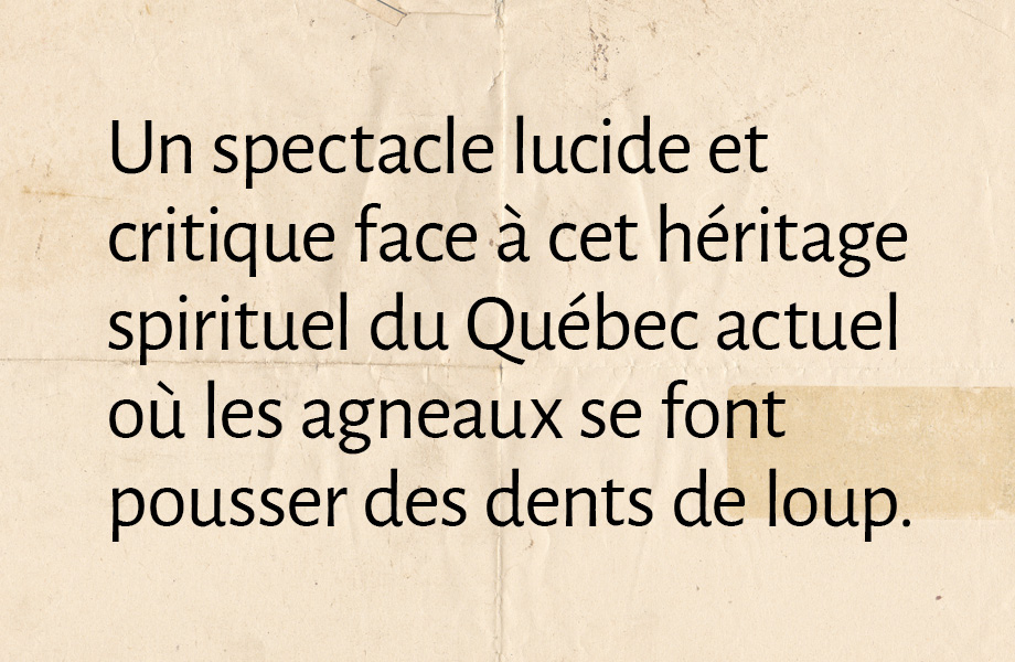 « Le rythme du spectacle, soutenu et rapide, exige une grande énergie physique. La comédienne passe d’une situation à l’autre sans à-coups, et l’ensemble s’avère d’une grande beauté visuelle et sonore, éblouissant même dans la diversité des situations, des costumes, des styles musicaux qu’elle a su si bien intégrer. On est séduit par la complexité et la richesse de l’univers polysémique qui en résulte. »